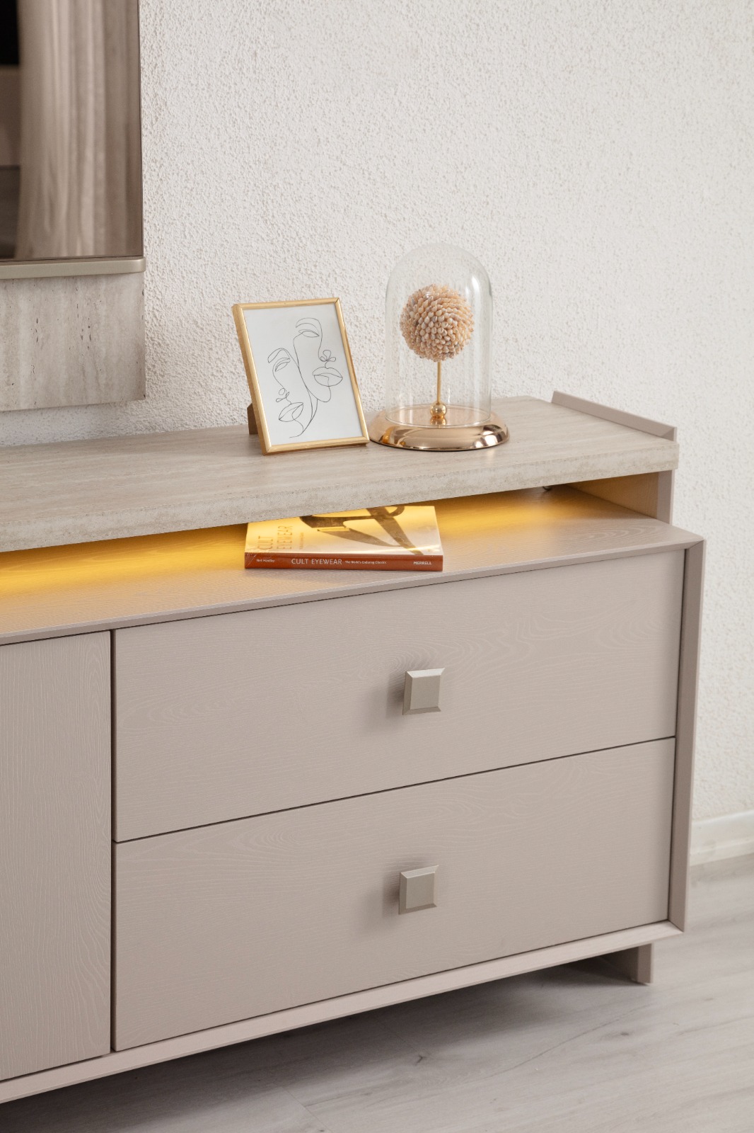 Zenith Yemek Odası, modern çizgileri ve sofistike detaylarıyla dikkat çeker. Geniş masa ve ergonomik sandalye tasarımı, fonksiyonel depolama alanları ile hem estetik hem konforlu bir kullanım sunar.